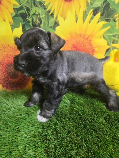 2 Male puppy's 1 Liver and tan parti, 1 Male puppy Liver and tan. 2 Females, Liver pepper parti 1 Salt n pepper parti. All puppy's come with the following Microchip, vaccines Distemper, Hepatitis, Parvo, Parainfluenza, dewormed at 2,4,6,8 weeks old, Vet checked with certificate, tails docked, dewclaws removed, sample of food, probiotic, treats, puppy kit, sent toy and blanket with siblings and parents sent on them, and a special hand made bag to hold your goodies. Health Check Policy Before your schnauzer puppy is ready to be taken home, he or she has undergone an extensive veterinary health check and been vaccinated and dewormed to ensure your puppy is healthy and happy. This Veterinary Health Check is designed to examine all aspects of the puppys health including mouth teeth & gums, ears, heart, skin & coat, lungs, hips, & patellas