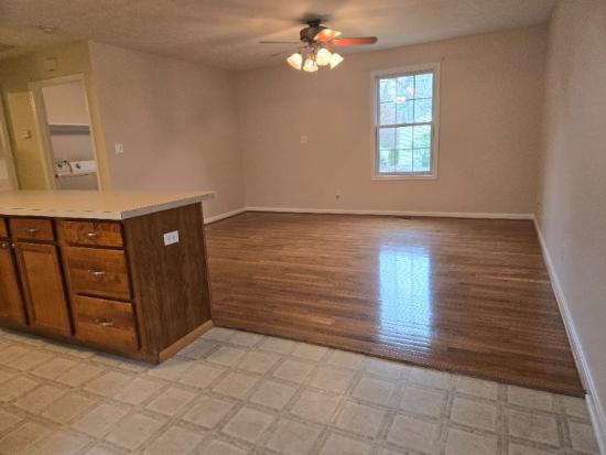 One large bedroom with large walk in closet. One bathroom. Laundry room with pantry shelving. Kitchen includes a dishwasher. Single car attached garage. Private deck. Lawn care included. On a private Rd. off of Rt. 5 near Willows Rd. Close to Webster Field and PAX River Naval Base. Security deposit one month rent.