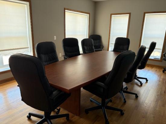 10'x48" Natural Cherry Boot Shape Laminate Top with wood edging conference table.